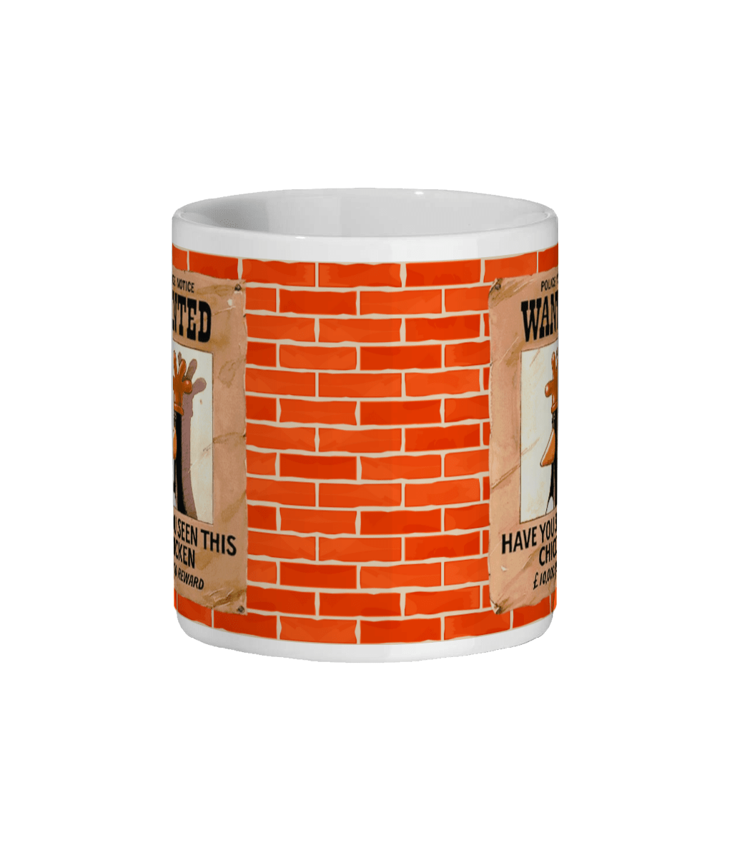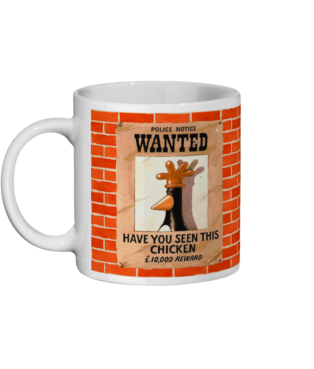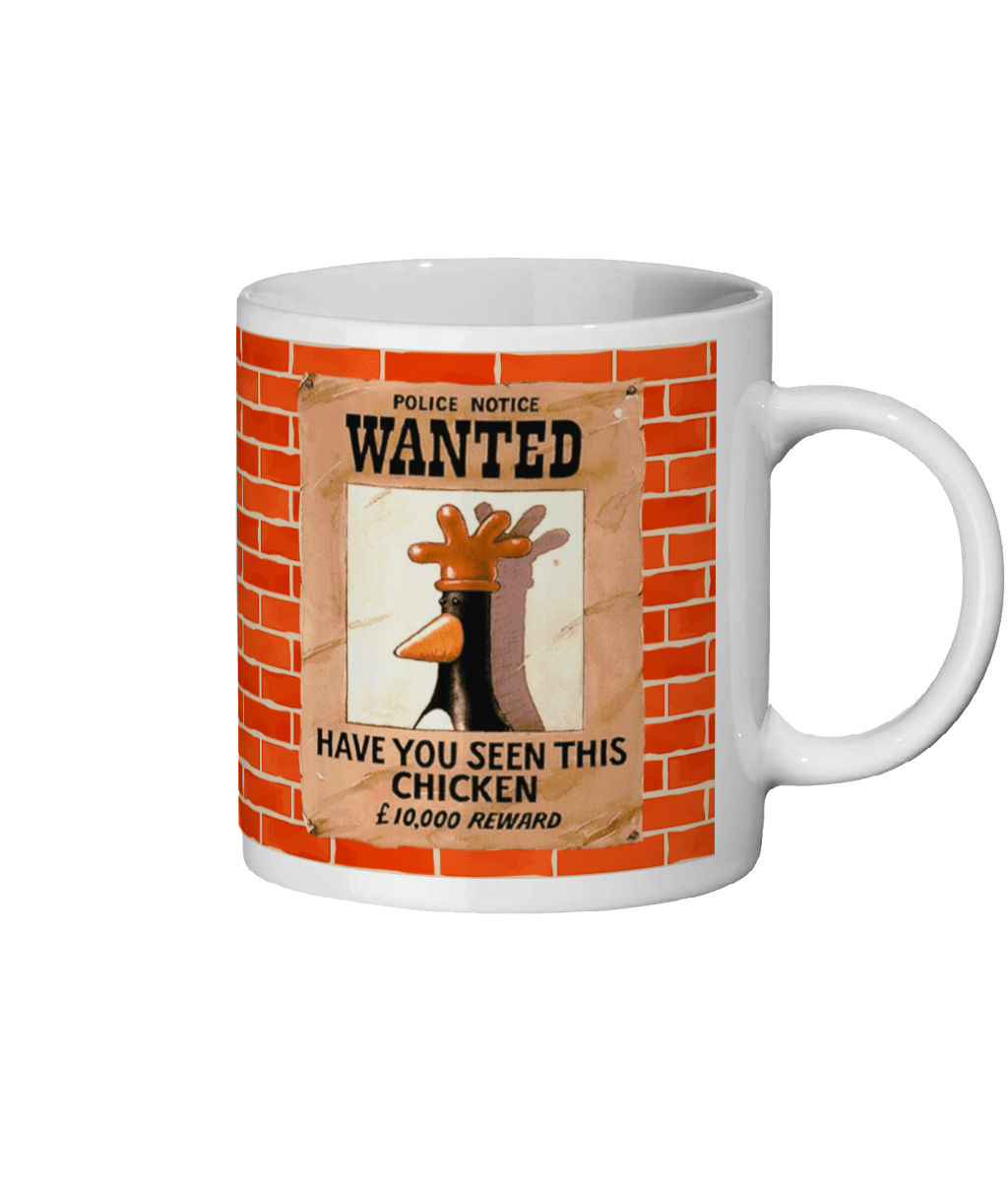 Feathers McGraw mug, Wallace and Gromit mug, The Wrong Trousers mug, Feathers McGraw wanted poster, Have You Seen This Chicken mug, funny British mug, British animation mug, Aardman mug, penguin mug, villain mug, British comedy mug, Wallace and Gromit gift, Feathers McGraw gift, birthday mug UK, Christmas mug UK, film fan mug, classic TV mug, penguin lover mug, novelty mug UK, UK printed mug, ceramic mug 325ml, microwave safe mug, dishwasher safe mug, Wallace Gromit merchandise, British film mug, funny character mug, cartoon mug UK, nostalgic mug UK, kids TV mug, Wallace Gromit fan gift